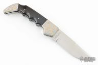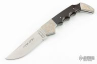 This lockback by Valor has satin finished blade with nail nick. The handle has engraved stainless steel bolsters, black scales, stainless steel liners, stainless steel spring. Has some ligth scratches, otherwise excellent condition. Comes with original box.