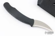 This L-via by Kopis Design features a satin finish hawkbill blade with .061" blade stock and .784" blade depth, hidden tang construction. The handle is glass filled nylon. Comes with a kydex sheath and original box. New condition.