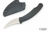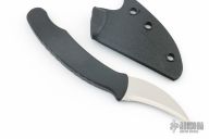 This L-via by Kopis Design features a satin finish hawkbill blade with .061" blade stock and .784" blade depth, hidden tang construction. The handle is glass filled nylon. Comes with a kydex sheath and original box. New condition.