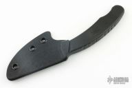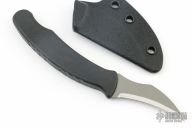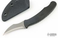 This L-via by Kopis Design features a bead blast and tumble finish hawkbill blade with thumb ramp, .061" blade stock and .784" blade depth, hidden tang construction. The handle is glass filled nylon. Comes with a kydex sheath and original box. New condition.