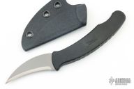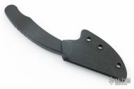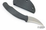 This L-via by Kopis Design features a bead blast and tumble finish hawkbill blade with .061" blade stock and .784" blade depth, hidden tang construction. The handle is glass filled nylon. Comes with a kydex sheath and original box. New condition.