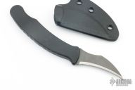 This L-via by Kopis Design features an acid stonewash finish ramped hawkbill blade with .061" blade stock and .784" blade depth, hidden tang construction. The handle is glass filled nylon. Comes with a kydex sheath and original box. New condition.