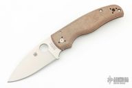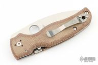 This Shaman PLN by Spyderco features a satin spear point with notched thumb and finger rests, thumbhole. The handle has brown micarta scales, inlaid stainless steel liners and a stonewashed stainless steel backspacer, 4-way reversible stainless steel clip, lanyard hole at the butt. New condition. Comes with original box and papers.