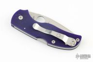 This Native5 folder by Spyderco Knives has a satin finish blade with thumbhole. The handle has purple G-10 scales, stainless steel liners, and a 4-way reversible stainless steel clip. Nice smooth action. Comes with original box and papers. Excellent condition.