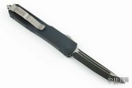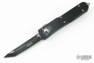 This Ultratech OTF automatic by Microtech features a T/E black tanto blade. Black aluminum contoured frame with tip down stainless steel clip. Dated 01/2013 and s/n 36814. Comes with a zipper case. Has a couple light scuffs, excellent condition otherwise.