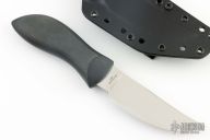Spyderco is privileged to offer a production fixed-blade collaboration patterned in Bill Moran's ageless tradition. We've made it available in two distinct blade shapes. The FB02 has a drop-point shape while the FB01 (Pictured) has an upswept Bowie-style blade. Both blades are flat-ground VG-10 and carry Bill's signature. They are tapered, starting thick where the blade joins the handle, thinning down the spine to a fine, uniformly ground tip. In the hand the knife conveys a unique feeling of balance, called by some a sweet spot. The sweet spot is due to the blade and handle being comparable in weight. This balance transfers into a feeling of steady control over the cutting edge. The FRN handle three-dimensionally fills out the palm and is inlayed with a panel of non-sliding Kraton. Highly recommended for hunting and camping both models come in a Leather sheath with belt loop