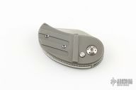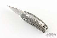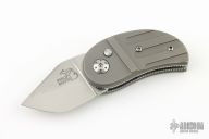 This Model 13 Minnow by Phil Booth features a hand rub satin finished blade. The handle has milled and blasted titanium scales, coin edge stainless steel liners, stainless steel backspacer, steel push button. Nice action and blade seating. Comes with a zippered case. Has a couple light scuffs, otherwise excellent condition.