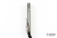 The idea behind the Sebenza has never wavered: to craft the best pocket knife in the world. Premium materials, paired with pristine finishes, and a bank-vault lock-up— all within an incredibly light, precision-made tool. That commitment continues with the new Sebenza 31 with a Ceramic Ball Interface. Like the very first Sebenza, it delivers the same warm “click” and heirloom quality produced from aerospace tolerances. The Sebenza 31 brings finer details to an already fine knife — and another steady, reliable step forward. This one has a stonewash finished tanto blade with single thumbstud. The handle has a glass blasted titanium frame, matching tip up clip. Comes with original box and papers dated December 27, 2021. Excellent condition.