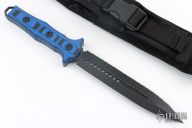 H003-8C-BLUBLK Nephilim - D/E Battleworn Black Full Serrated Blue/Black G-10