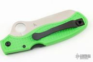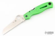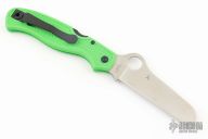The refined features of the Salt 2 and Pacific Salt 2 found immediate favor with Spyderco fans, many of whom were also intrigued by the performance potential of Spyderco's other ultra-corrosion-resistant blade steel—LC200N. Taking this evolutionary process one step further, Spyderco decided to make the investment to ship LC200N steel to Japan so it could be incorporated into the latest versions of the Salt lightweight models manufactured there. The result is a family of Salt folding knives proudly featuring LC200N blade steel and vibrant high-visibility green handles. Taking full advantage of the unique properties of this martensitic steel, the blades of these knives feature full-flat grinds for exceptional edge geometry and low-friction cutting performance. The PlainEdge versions offer enhanced edge retention compared to H-1-bladed Salt knives, and all models are also available in SpyderEdge format.