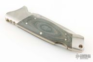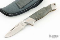 This Model 82 SSG by Condor USA features a satin finished drop point blade with notched thumbrest. The handle has stainless steel bolsters, front and rear, and black linen micarta scales. Comes with a grey nylon sheath and original box and papers. Excellent condition.