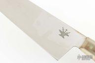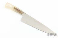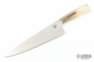 This Chef Knife by Theo Rock Nazz features a satin finished blade with .099" blade stock and 2.033" blade depth, hidden tang construction. The handle is made of ST-45 "ICE" material. This knife is dishwasher safe on the gentle cycle. New from maker!