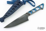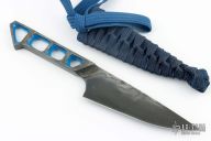 This knife by Theo Rock Nazz features an acid washed blade with integral handle and blue resin, .141" blade stock and 1.478" blade depth, integral construction. The handle has blue resin inside the cutouts. Comes with an epoxy soaked cord sheath, pretty unique! New from maker!