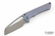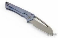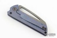 This Nurse flipper by Gavko Knives features a stonewash and acid wash finished blade with thumbhole. The handle has a blasted and anodized titanium frame with sculpted tip up clip, anodized pivot, anodized screws. Rides on bearings, nice detent, lockup and blade seating. Comes with a zippered case. Excellent condition.