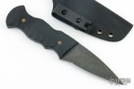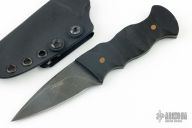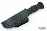 This tactical fixed blade by Chris Monge of Yuca BladeWorks features an acid etched drop point blade with a full tang construction. .129" Blade Stock. 1.58" Blade Depth. The handle is composed of sculpted G10. Includes a kydex sheath with belt clip. Excellent Condition.