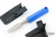 Steve is always cooking up something in his 'mad scientist' workshop. The Sky-Driver may look like a simple screw driver, but it it so much more. The turned delrin handle is overbuilt and grooved for a full grip. This one features a blue delrin handle. The steel driver is wedged for a thicker tip, perfect for prying and smashing. Each driver is pinned to the handle for easy tear down. Basically, these bad boys are overbuilt pry/screw/breaking tools with big handles that are easy to hold on too. The included cord and bead adds to wrist retention, and can be looped around your fingers and the tip for grip retention. The oversized bead also lets you fish the Driver out when tucked in a pack. The nifty thing about each of these Sky-Drivers is that they come in under 7 inches long. If you don't know why that might be cool, try googling "Screwdriver shorter than 7 inches". #bigboyrules #nocomment