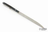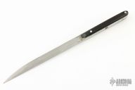 This Vampire Spike by Kaji Customs features a satin finished spike blade, it is not sharpened, just pointy, .250" blade stock and .486" blade depth, full reverse tapered tang construction. Ebony wood scales with nickel silver liners. Has some oxidation on the tang. New from maker.