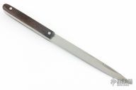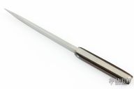 This Vampire Spike by Kaji Customs features a satin finished spike blade, it is not sharpened, just pointy, .206" blade stock and .498" blade depth, full tang construction. Wenge wood scales with white/grey liners. Has some oxidation. New from maker.