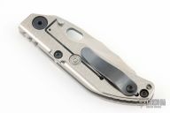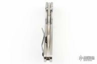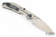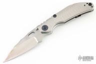 This DDC BBN-M by Duane Dwyer features a Magnacut wharncliffe blade with thumbhole. The handle has a milled titanium frame with tip up black titanium clip, left or right reversible, black titanium hardware. Nice detent, lockup and blade seating. Comes with velcro case. Excellent condition.