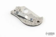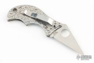 The Spin may be the runt in Spyderco's Little Big Knife line of folders but scores points by combining compact size and workhorse attitude. Eric Glesser of Spyderco's engineering department created the Spin to be the smallest possible folder with the largest possible cutting performance and it had to be stylish. Its 1-13/16" (46mm) blade is high-carbon VG-10 stainless steel with a Wharncliffe profile. This shape offers a utilitarian long PlainEdge cutting surface and slightly rounded tip that works well when cutting with detail or even cleaning fingernails. The blade folds into a flat stainless steel acid etched handle that dresses it up while adding textured resistance for top-notch grip.
