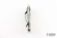 On the back of the handle is an Integral Lock®. This LinerLock design modification was created by custom knifemaker Chris Reeve, using the handle scale as the lock's liner. With the back portion of the handle doubling as both handle and lock, the need for internal liners is eliminated and the knife can be manufactured incredibly slim yet strong. The Spin comes with a three-screwed stainless clothing clip that positions the knife tip-down in a pocket and also offers a way to money-clip your cash or attach to a necktie.