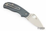 This Urban knife by Spyderco features a satin finished blade with thumbhole and notched thumbrest. The handle has grey FRN scales with a reversible tip up clip. Excellent condition. Comes with original box and papers. Sprint run with K390 blade steel.