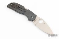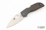 This knife by Spyderco features a satin finished drop point blade with a thumbhole and notched thumbramp.  The handle features steel liners/backspacer, a black tip up pocket clip and carbon fiber scales.  Includes the original box and papers.  Excellent Condition.