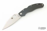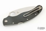 This Caly 3.5 by Spyderco features a satin finished 420J2 Steel with ZDP-189 core blade with a thumb-hole and notched thumb and index finger rests. The handle has carbon fiber scales, and stainless steel liners, back-spacer and pocket clip. Clip is tip up and is right or left-handed reversible. Includes the original box and papers. Excellent condition.