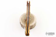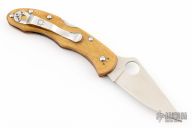 The blade on this Delica is ZDP-189, a powdered metal made by Hitachi that has phenomenal chemistry with 3% carbon. The hardness is around 64RC and edge retention is exceptional. The blade features spine jimping that extends from the ramp to the top of the handle. The Spyderco original thumb hole on the blade allows ambidextrous one-hand opening for right or left handers and the phosphor bronze washers at the pivot make the blade action smooth. The Delica has a lightweight FRN (fiberglass reinforced nylon) handle with skeletonized stainless steel liners and a strong back lock mechanism. The handle features screw construction for quick, simple cleaning and adjustment. The FRN scales utilize Spyderco's patented Bi-Directional Texturing to keep your hand from slipping under pressure. The pocket clip is 4-way reversible for tip-up/down and left/right carry.