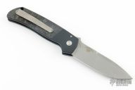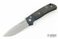 This ATCF Auto by Pro-Tech features a stonewashed Magnacut blade with notched thumbrest. The handle has a black aluminum frame with Dark Matter carbon fiber scales, tip up milled titanium clip with hidden screws. Comes with original box and papers. Excellent condition.