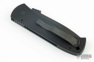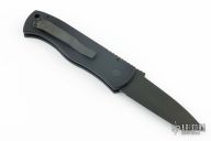 This Emerson/Pro-Tech CQC7 automatic has a chisel ground black sterile blade with a plain edge and a solid black aluminum handle. Black stainless steel clip. Coil spring. Comes with original box and papers. Excellent condition.