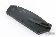 This Pro-Strider PT by Pro-Tech and Strider Knives features a black blade with notched thumbrest. The handle has a black aluminum frame with black hardware and black stainless steel tip up clip. Comes with original box and papers. Excellent condition.