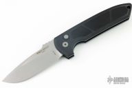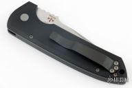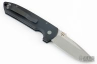 This Rockeye Auto by Pro-Tech has a two-tone blade with notched thumbrest. The handle has a black textured aluminum frame with a matching steel tip up pocket clip. Typical flawless Pro-tech mechanics and blade seating. Comes with original box and papers. Excellent condition.