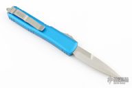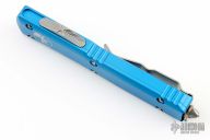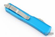 This Ultratech OTF automatic features a bayonet grind stonewash double edge blade with a standard edge and a blue anodized aluminum handle. Stainless steel clip. Glass breaker. Serial number 254238 and dated 09/2022. Comes with original box and papers. Excellent condition.