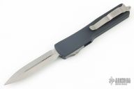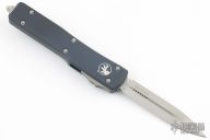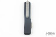 This UTX-70 OTF automatic by Microtech features a stonewash finished blade with a standard edges. The handle has a black aluminum frame with blasted stainless steel tip down clip. Serial number 3685 and dated 04/2019. Comes with original box and papers. Excellent condition.