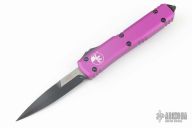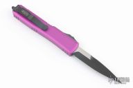 This Ultratech by Microtech Knives features a black bayonet ground blade with sharpened top edge. The handle has an Violet aluminum frame with black hardware and tip down stainless steel clip, Dated 10/2022 and S/N 258739. Comes with original box and papers. Excellent condition.