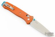 This orange and blue aluminum Benchmade Bailout is a SHOT Show 2023 limited special edition. The bold and vibrant colors elevate one of Benchmade's most popular models to a whole new level. Made from CPM 3V steel and paired with a tanto style blade, you'll be hard pressed to find a tougher tactical EDC folder.