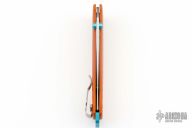 - Orange anodized aluminum handle with complementary blue aluminum pommel with a lanyard slot