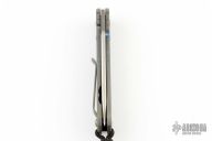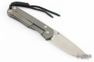This small Sebenza by Chris Reeve Knives features a tumble finish blade and bead blast titanium frame. Anodized titanium thumb stud and barrel spacer. Lanyard hole in pommel. Nice detent, lockup and blade seating. Has some scuffs, otherwise excellent condition.  Comes with a zippered case.