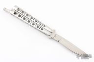 This early balisong from Pacific Cutlery features a Jody Samson ground blade with satin grinds and mirror polished flats. The handles are aluminum with hole pattern. Includes a zippered case. Has some scuffs and scratches, great condition otherwise.