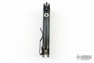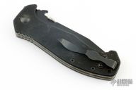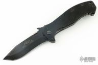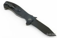 This Mini CQC-15 BTS from Emerson features a black recurve tanto blade with notched thumbrest, thumbhole and wave feature. The handle has black G-10 scales, titanium liners, black G-10 backspacer, and a tip up black stainless steel clip. Nice detent, lockup and blade seating. Serial Number 3513. Comes with original box and papers. Has scuffs and scratches, is a little dirty. Great condition otherwise.
