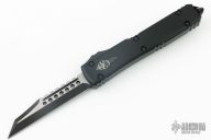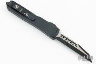 This Ultratech by Microtech Knives features a stonewashed Warhound blade with satin flats, black bevels and false top edge. The handle has a black aluminum frame with tip down black stainless steel clip and hardware. Comes with original box and papers. 09/2023, S/N 3002. Has some light scuffs and scratches, great condition otherwise.