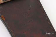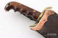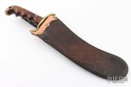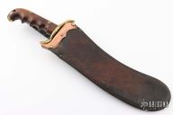 The original scabbard is also in very good condition, and is probably rarer than the Bolo Knife itself. This example still has the original markings visible on the back of the sheath.