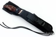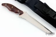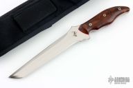 This Tanto from Mercworx features a hand rub satin finish blade with sharpened top edge and notched thumb ramp, .174" blade stock and 1.698" blade depth. The handle is comprised of ironwood burl scales over full tang construction with mosaic pins. Includes tactical nylon sheath. Excellent condition.