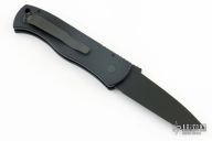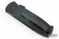 This Emerson/Pro-Tech CQC7 automatic has a chisel ground black sterile blade with a plain edge and a solid black aluminum handle. Black stainless steel clip. Coil spring. Comes with original box and papers. Excellent condition.