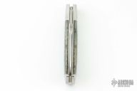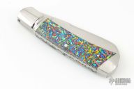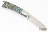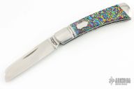 This Sheepsfoot by Casey Berryhill features a hand rub satin finished blade with nail nick. The handle has fluted stainless steel bolsters with integral liners with fileworked spines, Dichloram covers, stainless steel escutcheon and spring. Has half-stop, flush in all positions. New from maker. Comes with a zippered case and a COA dated 12/2023.