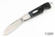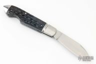This Easy Open Slipjoint by Casey Berryhill features a hand rub satin finished blade with nail nick. The handle has fluted stainless steel bolsters with integral liners with fileworked spines, black jigged bone covers, stainless steel escutcheon and spring. Has half-stop, flush in all positions. New from maker. Comes with a zippered case and a COA dated 02/2024.