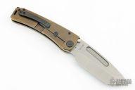 This Marauder from Medford Knife and Tool features a satin finished blade with fullers. The handle has an anodized titanium frame over a PVD steel backspacer and PVD titanium tip up clip. Includes original box, papers and hard case. Dated June 15, 2023. Excellent condition.