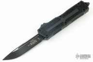 This Scarab II Gen III Proof Run by Microtech features an two-tone black finished blade with fullers. The handle has a black aluminum handle with non-slip inserts, a single glass breaker and tip down stainless steel clip. Comes with original box and papers. Excellent condition.