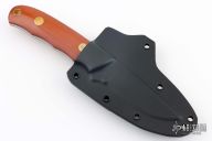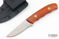 This K-18 Straight Personal features a satin finished blade, .128" blade thickness and .850" blade depth, full tang construction. The handle has antique paper micarta scales, brass pins and lanyard hole. Comes with a kydex sheath with belt clip. Excellent condition.